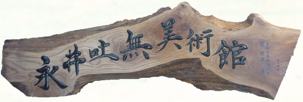 2004年(平成16年)山梨県上野原市大野(矢坪地区)にアトリエを開設。自宅の東京都国分寺市より週末の土・日に奥様と自家用車で通い、地元の人達と親交しながら作品制作に勤しむ。私もその中の一人ですが、家族ぐるみのお付き合いをさせて頂くうち押し掛け弟子に・・・。弟子と云っても絵筆は持たず、個展の手伝いの他はワインと食事のお供が専らという次第。2023年、腎臓の一つが機能しなくなり手術にて切除。それよりしばしば体調を崩し、翌年の2024年4月1日未明急逝しました。師と仰ぎ兄とも慕った永井先生、長いようで短い20年余りの歳月。先生の一ファンとして収集した作品、マッチ箱の様な小さな美術館ですが先生を忍んで一周忌を期に建設しました。限りない感謝と、心からのご冥福を祈念して。